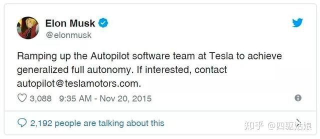 2015 年 12 月,一个深夜,马斯克连发数条推特,招聘软件人才,亲自面试,直接向他汇报。