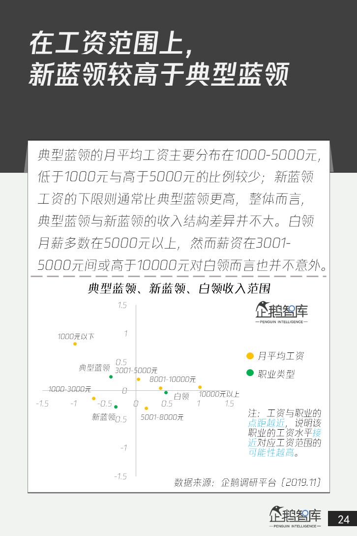 他们致力于解决目标客户诸如家政、物流、技能、养生、保险等领域上的实际需求,销售、保安、房产经纪人、美容美发师、快递员、外卖员、出租车司机、厨师、月嫂、健身教练、育婴师等都被划入“新蓝领”的行列中,而诸如流水线工人、货车司机、建筑工人、维修工人、仓库管理员等仍属于典型蓝领。