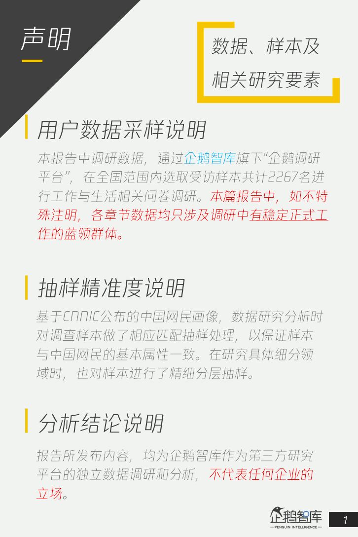 为此,我们通过企鹅智库旗下“企鹅调研平台”,在全国范围内选取受访样本共计2267名蓝领网民,进行工作与生活相关调研,并最终发布了这份《中国蓝领网民工作与生活调研报告》。