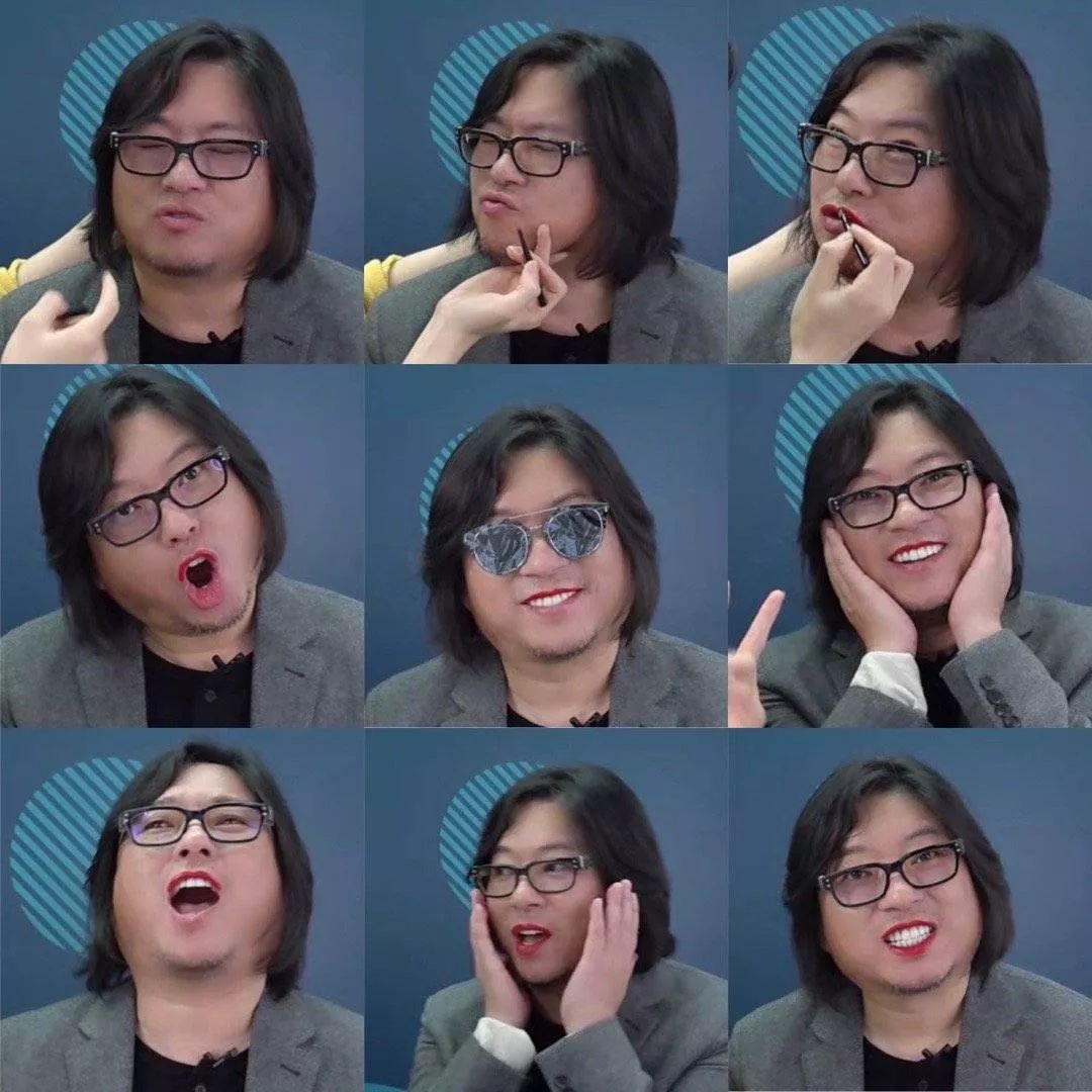 因为善用瘦脸滤镜而成为网红的高晓松也乐于接受李佳琦的表情包挑战。当要求演绎出“开心的像个两百斤的孩子”的表情时,他双手托腮作呆萌状,越活越年轻的50岁中年人。