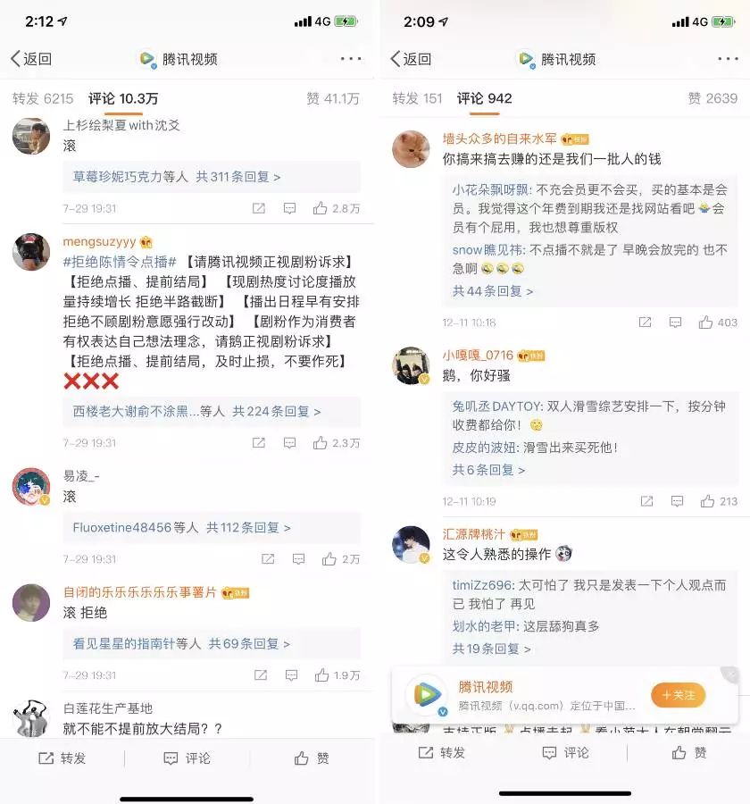 如果你点开腾讯视频和爱奇艺的微博,找到其宣告《庆余年》开启「超前点播特权」的评论,你会发现,用户对这种特权的反应大多都是一个掷地有声的「滚!」字。