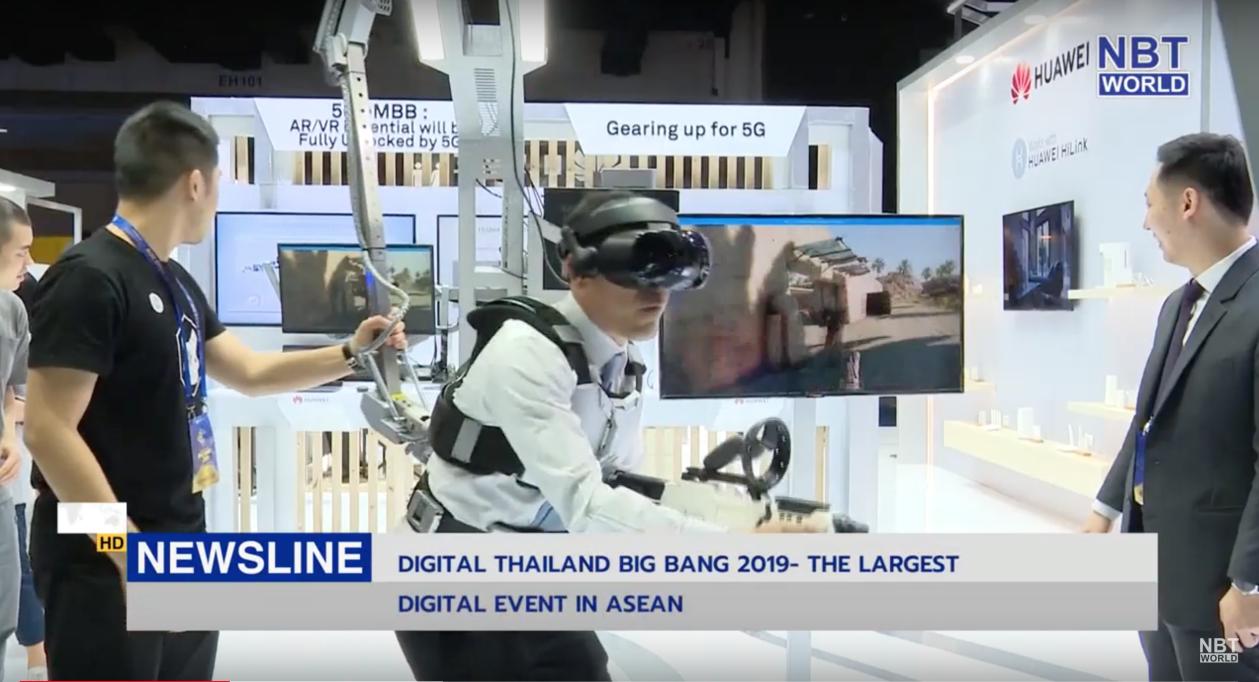 今年10月28日至31日,华为技术(泰国)有限公司在泰国举行的20周年庆典Digital Digital Big Bang 东盟互联互通上宣布创建集成生态系统的新愿景和技术成果,梦语者VR代表5G智能生态系统之一在Internet+AI VR Experience Space(互联网+人工智能VR演示空间)展区演示了全新的文旅、消防、教育领域的5G VR人机交互商用方案。