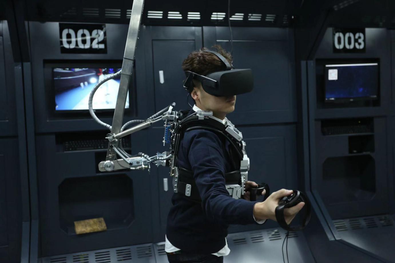梦神科技是重庆本土一家专注于VR行业人机交互解决方案的生态服务型公司。走进梦神科技位于重庆市高新区的办公区,首先映入眼帘的是偌大空间里一排排顶部悬挂、如钢铁侠战衣般的VR穿戴式装置,让人恍惚间以为误入了超级英雄的试炼场。
