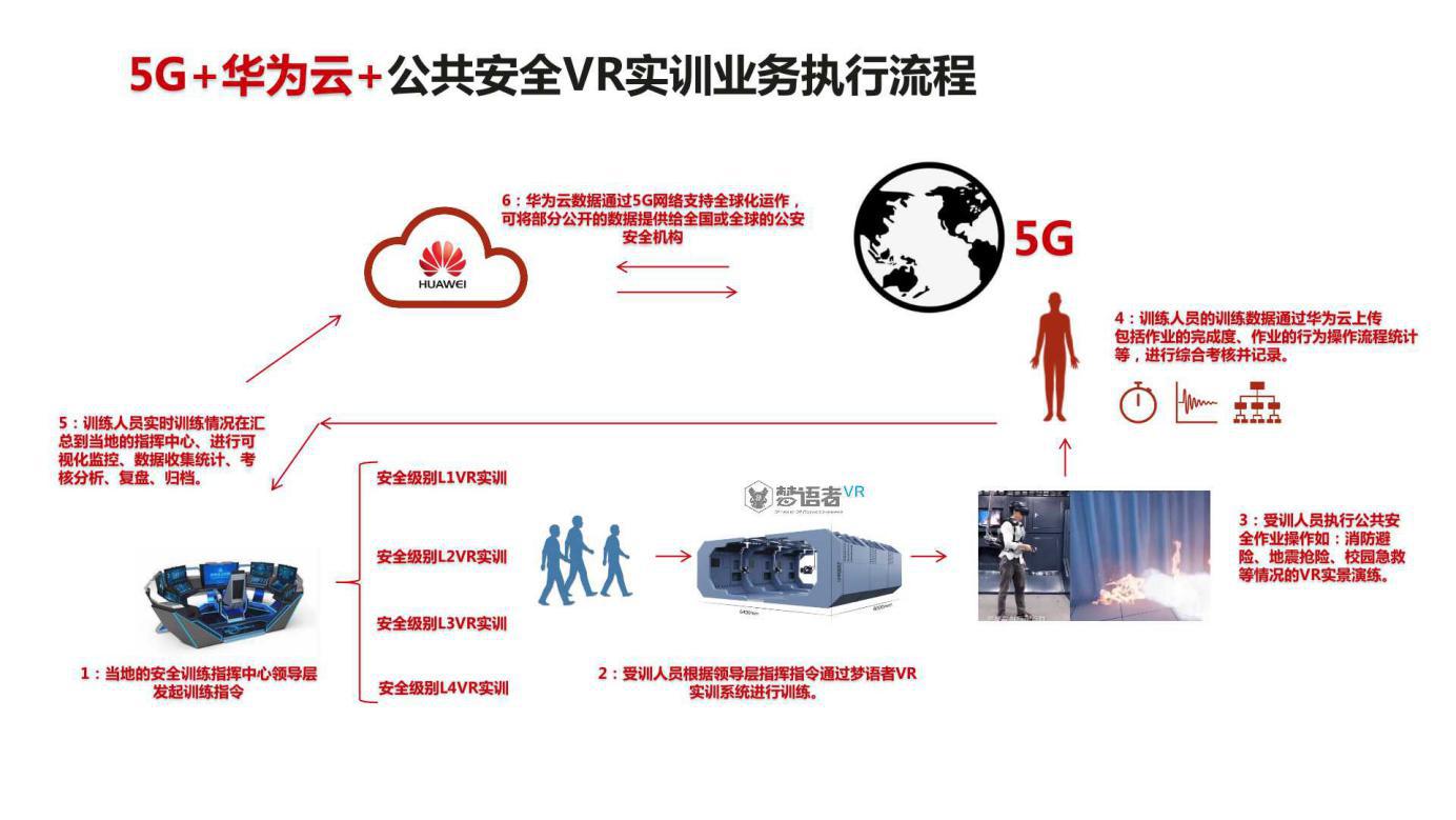 2019年,梦神科技成为了华为云的生态合作伙伴。携手华为云推出的新型梦语者VR民用级公共安全实训系统」将提供给各区域公安部进行民警的VR化培训。该系统将每一个受训警员通过梦语者VR势能反映舱的行为数据进行本地化抓取,再通过华为云端传输。数据将记录和考核每一个警员在VR实训过程中的行为操作流程和规范是否达标,以及应急反应时间和协同能力。这些数据通过华为云数据存储、可视化分析、归档,支持5G网络共享。升级后的公安系统将有效统计每个城市区域对于公共安全训练的管理,如:哪些城市/乡镇消防安全意识不达标?哪些城市/乡镇地震避险意识弱?哪些城市/乡镇校园急救安全意识不达标?公安系统更够通过这些训练数据对于这些城市给予更多的支援和加强训练的机会,提高全国综合公共安全训练标准。