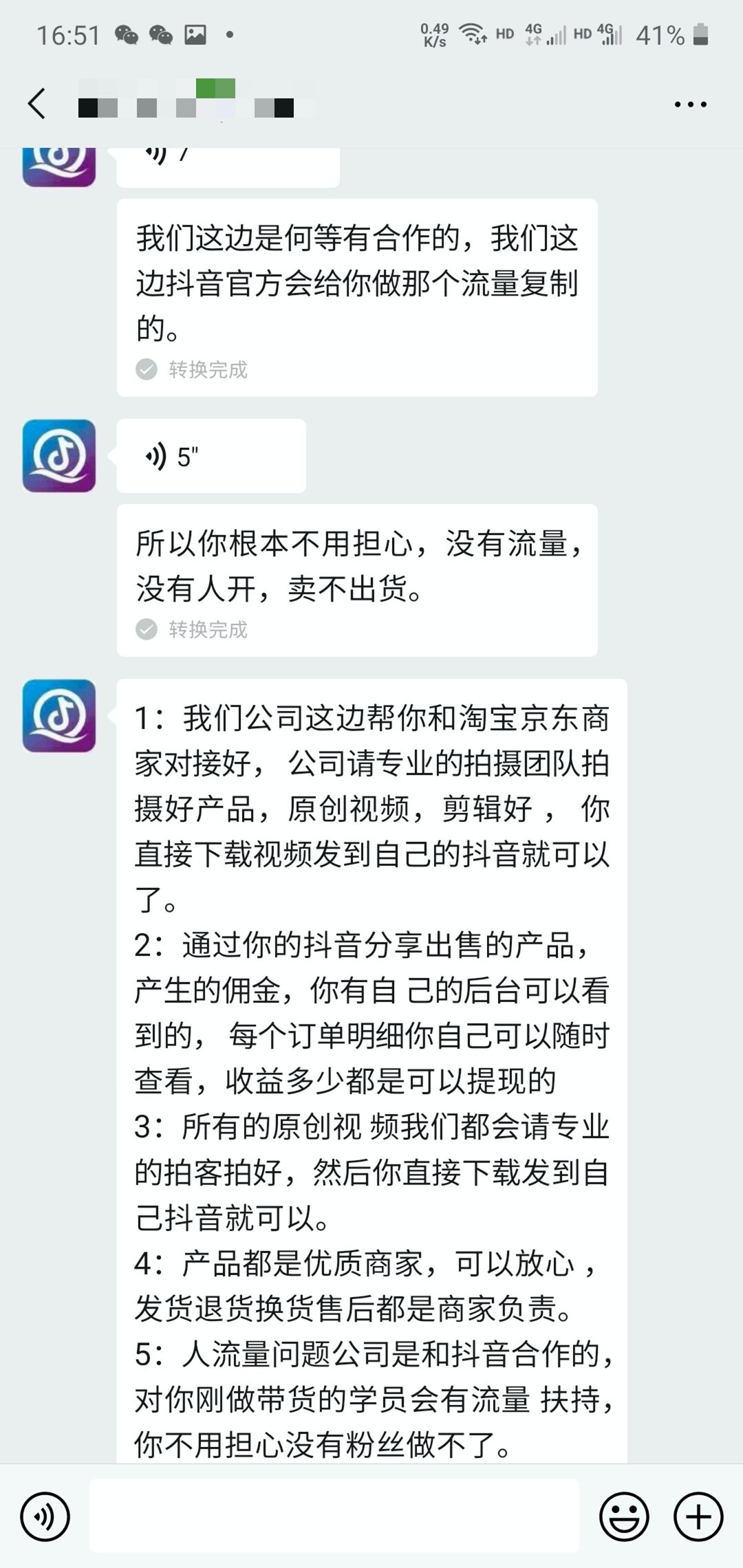 一是公司与抖音有合作,对刚做带货的会员有流量扶持,不用担心没有粉丝做不了;