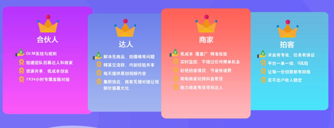 在“全X抖商”的设想中,这一过程可让多方收益:没有新型营销能力的商家成功将商品内容化,且带货内容可被数万“全X抖商”会员在全国发布,凿出了新渠道;有空余拍摄资源的拍客只需在收货后拍摄、制作带货视频上传平台,即可获得相应服务费用;普通人只需下载视频并上传抖音即可收取带货佣金,质保和售后均由厂商全面接管,风险可控。