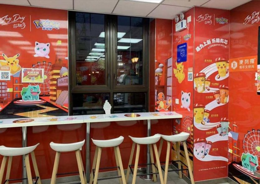 11月底,便利蜂银河SOHO店一夜之间焕然一新,竟然摇身一变成了“皮卡丘”形象店,墙面、货架、座椅,到处都是精灵宝可梦元素,瞬间变成了新的“网红打卡圣地”。