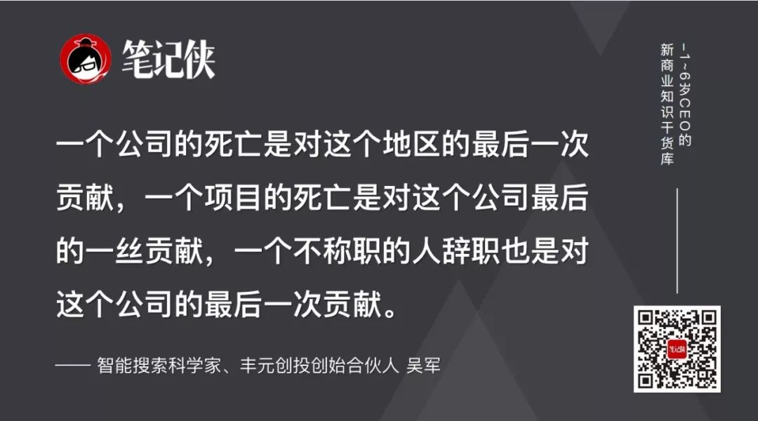 一个公司的死亡是对这个地区的最后一次贡献,一个项目的死亡是对这个公司最后的一丝贡献,一个不称职的人辞职也是对这个公司的最后一次贡献。