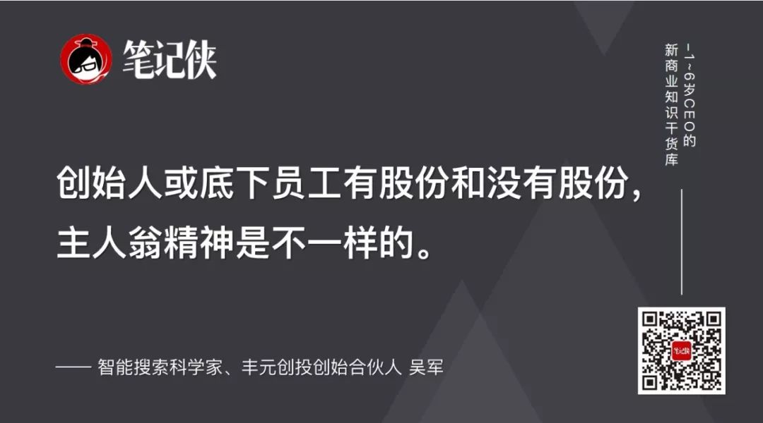 这说明创始人或底下员工有股份和没有股份,主人翁精神是不一样的。