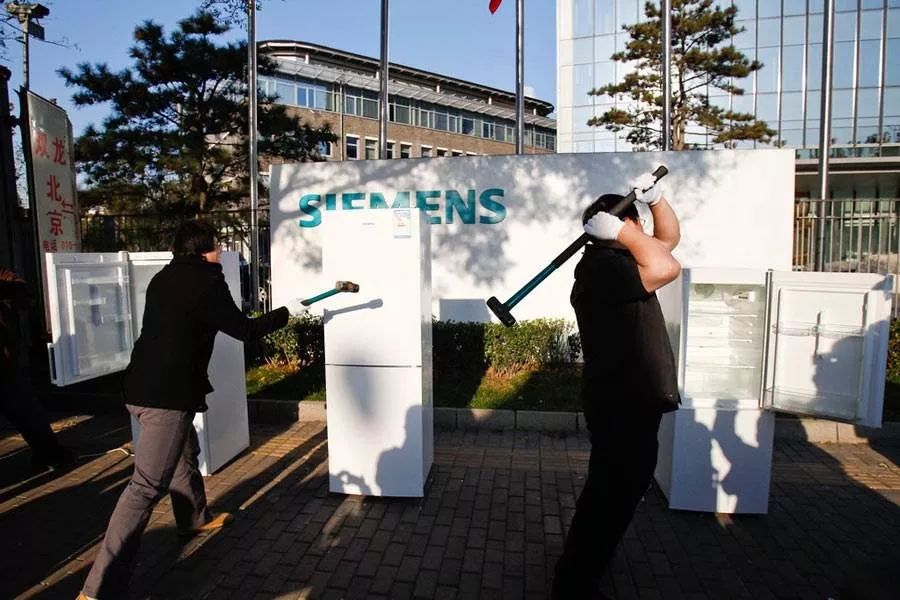 第三个大家更熟悉了,就是罗永浩多年前在西门子集团门前砸冰箱事件,老罗本就是能搞事的主儿,用这种极具震撼力的方式,本身信号就非常强烈了。