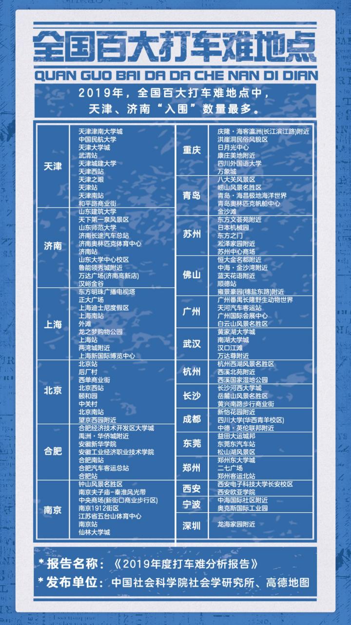 高德地图:全国100个打车难点中天津、济南数量最多