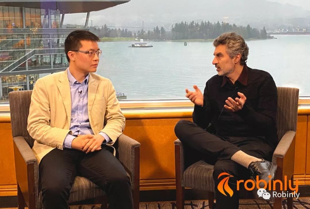 Bengio教授(右)与Robin.ly特邀主持人、MIT助理教授韩松(左)