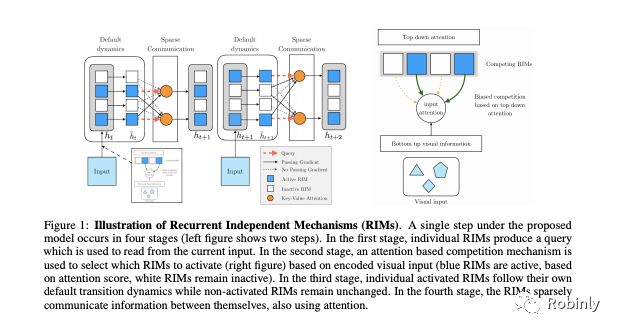RIM模型,来源:Yoshua Bengio论文《Recurrent Independent Mechanisms》,论文链接:https://arxiv.org/abs/1909.10893