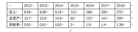 在上文分析中,销售利润率已经基本稳定且若不改变运营模式,理论上不会有太大的改善空间,权益乘数也相对稳定,在1.4左右,因此圆通的ROE表现关键是在资产周转率,即销售收入与总资产的比值。