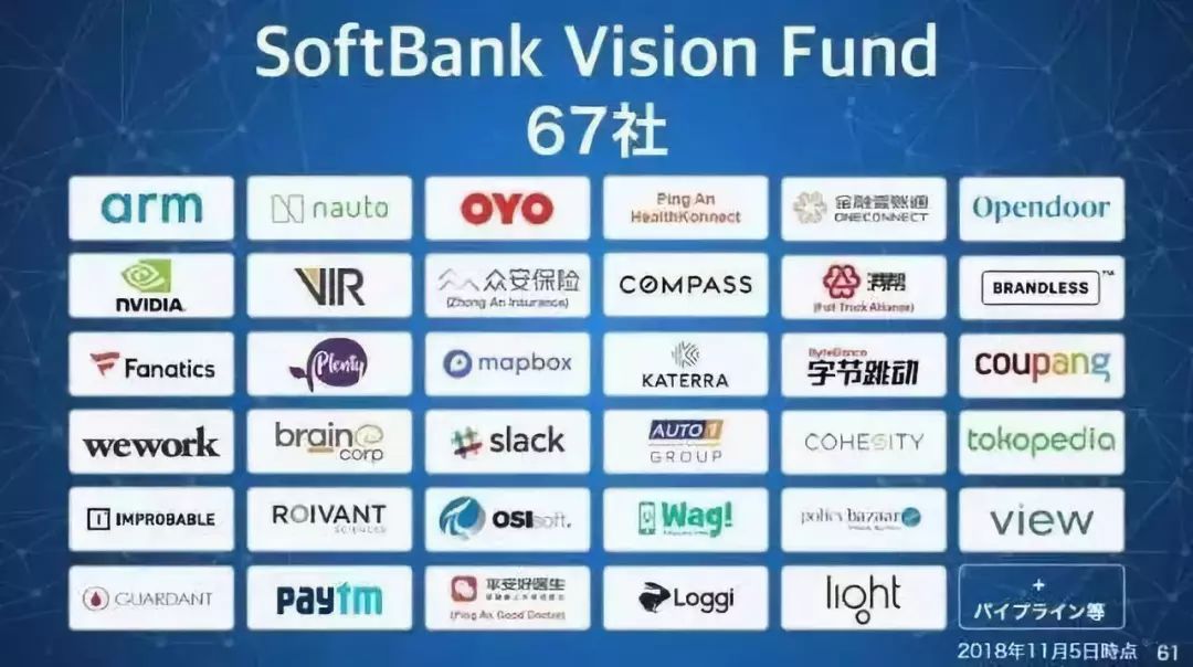 3年前,孙正义又创设了千亿美金规模的愿景基金,piapia地往互联网产业砸钱,先后投了Wework、Uber、字节跳动及印度OYO等全球众多独角兽公司。
