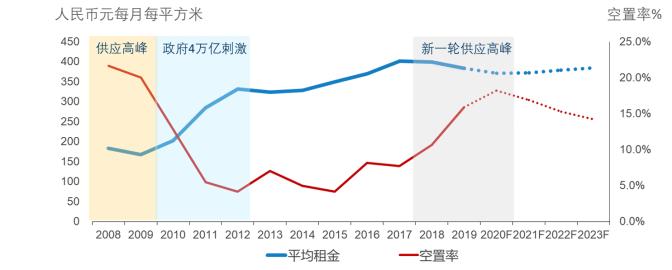北京写字楼整体市场空置率会在2020年触及最高点后逐步回落