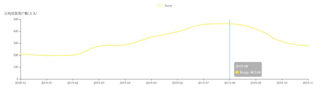 其实早在Keep上一拨裁员之前2个月,我写《Keep不懂克制》的时候,是先从产品侧看到了Keep留存吃力的影子。天气转冷以来,增长也开始呈向下趋势。据QM数据平台,Keep的日活跃数据从8月的529万跌到了11月的280万。