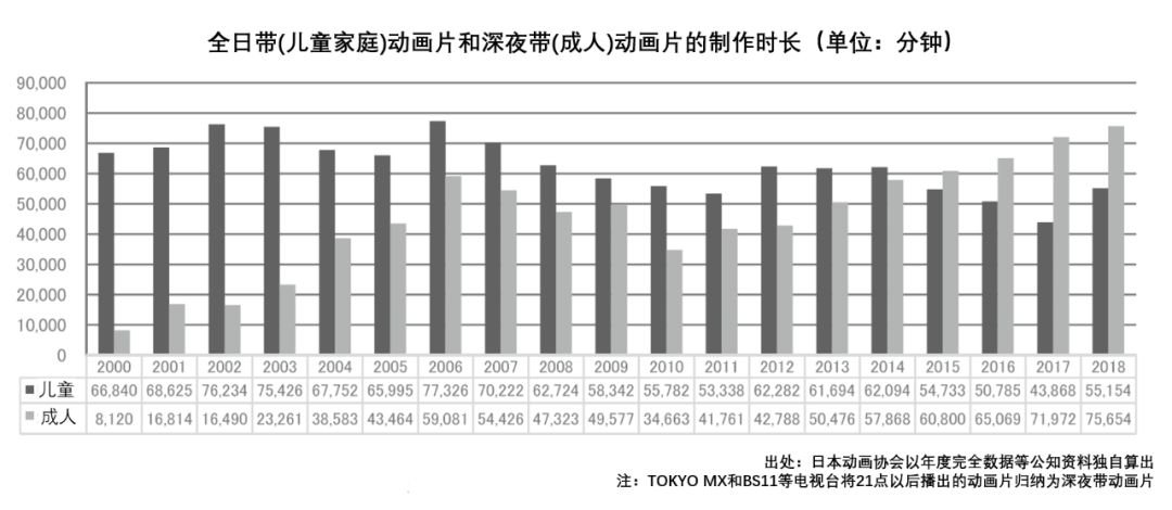 动画制作时长接近顶峰,成人动画片成为主流