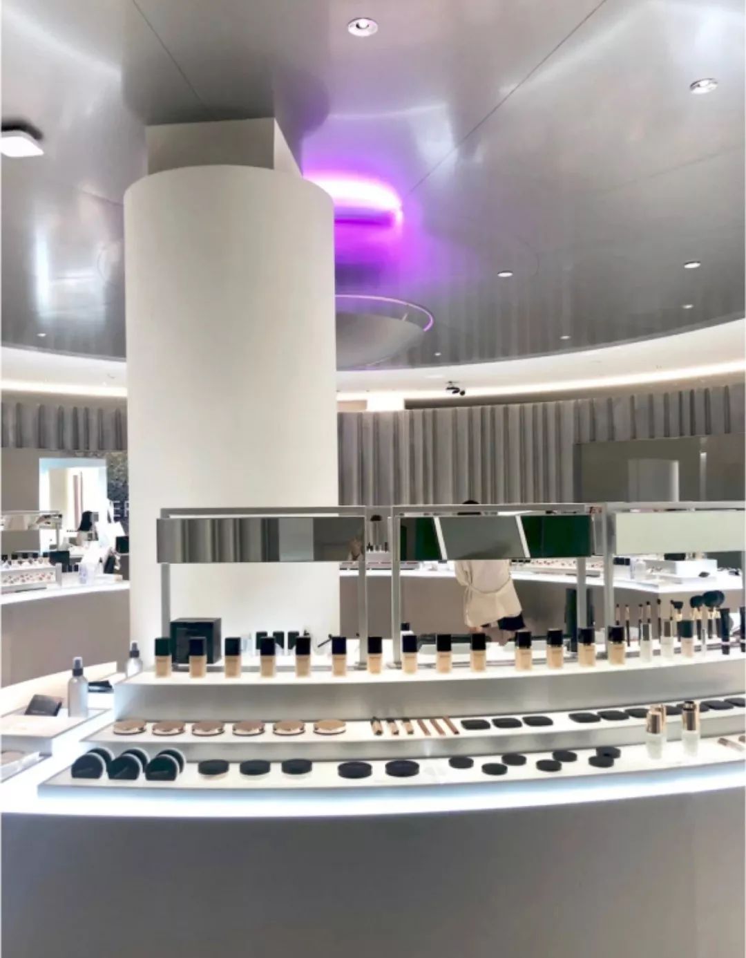 今年年初,一家拥有长吧试用台,用镜面、灯光、天花板设计出时尚感的线下门店,在正佳广场正式开业了。
