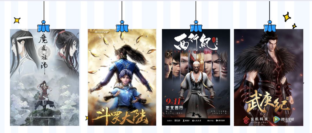 以腾讯视频为例,2015年,腾讯视频正式布局国漫;2016年,IP改编国漫开始大放异彩,《从前有座灵剑山》开创修仙类动画先河;2017年,产生巨大粉丝价值的《全职高手》登场,国漫开始有了自己的虚拟偶像;2018年,年番《斗罗大陆》和破圈爆款《魔道祖师》至今仍是国漫“顶流”;2019年,腾讯视频的动漫用户体量已达亿级。