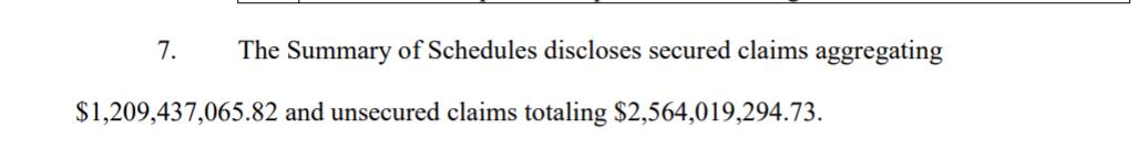 贾跃亭的律师 Richard Pachulski 在法官面前明确了一些新的信息:在本案中,贾跃亭的债务总额约为 37.7 亿美元。其中有抵押索赔(债务)约为12.1亿美元,无抵押索赔(债务)约为25.6亿美元。