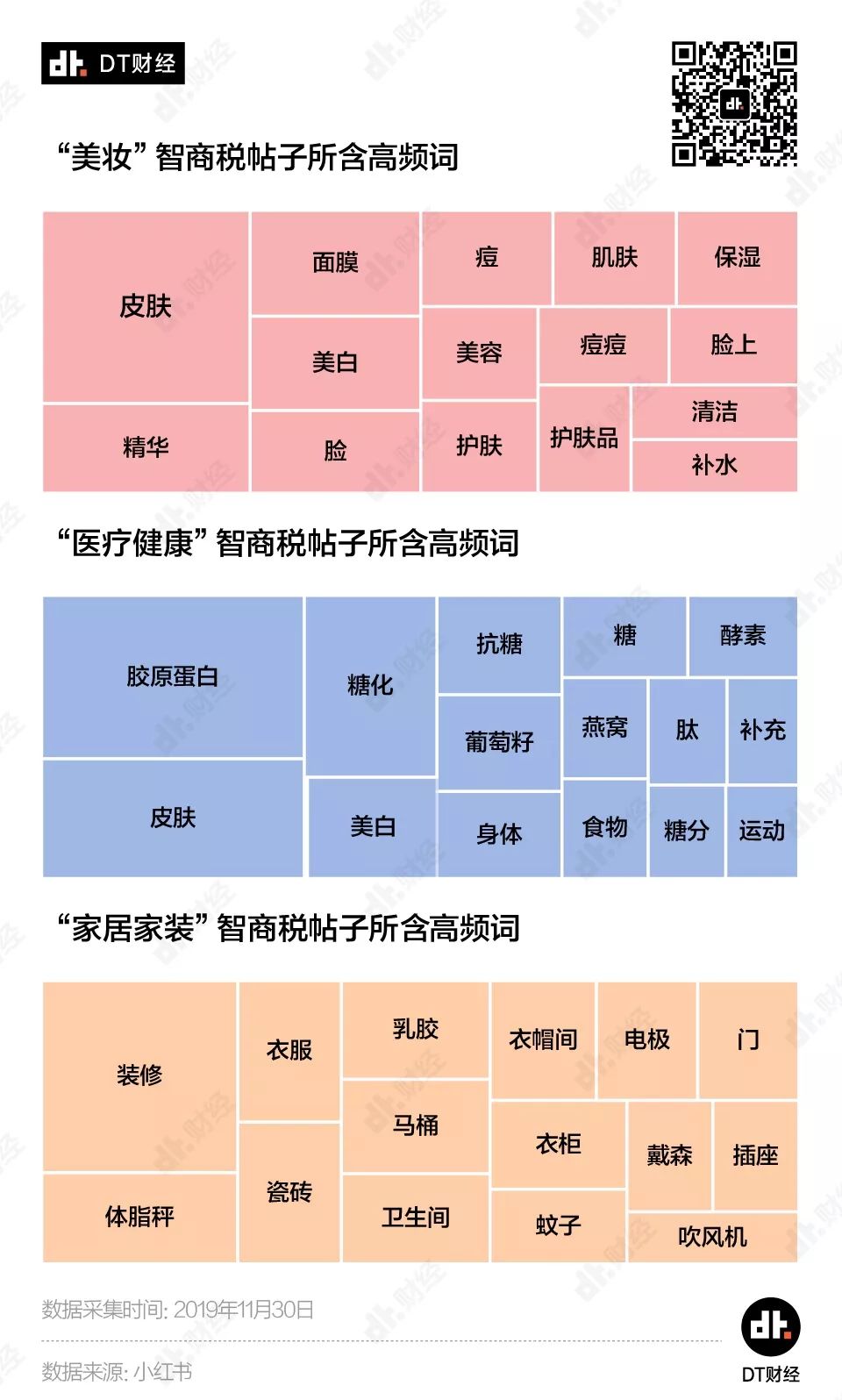 我们仍然以美妆、医疗健康、家居家装三大智商税来源为例,看看普通人都在哪些词汇上踩了雷。