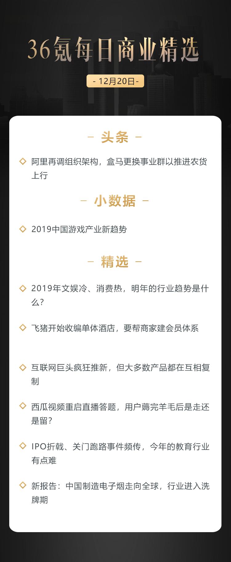 本文来自36氪付费栏目《36氪每日商业精选》——12月20日