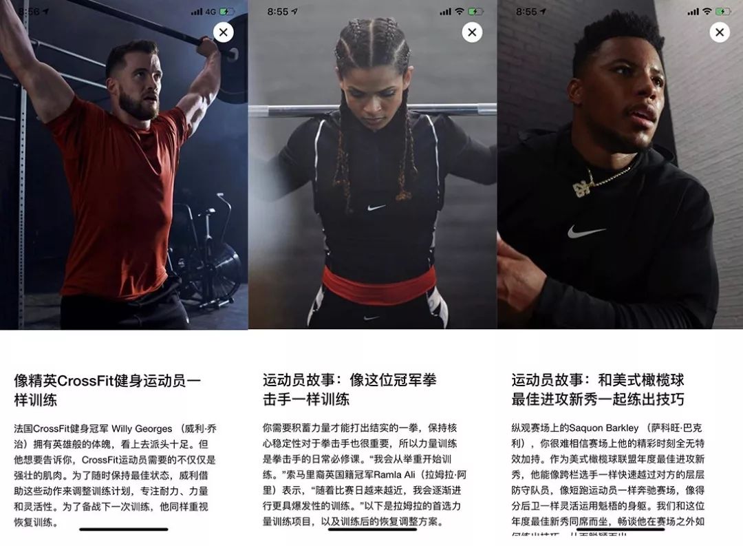 早在11月耐克发布了Nike App中文版,除了可购买Nike产品,App根据用户兴趣推送运动指导、装备建议等内容,以及预约耐克组织的线下活动和运动课程等。