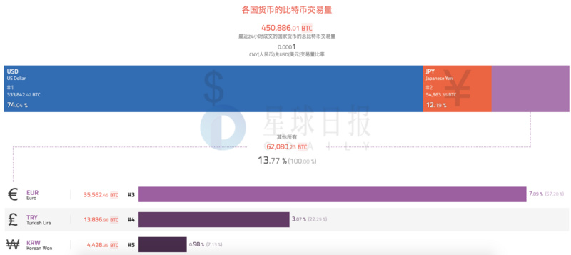 比特币兑法币交易美元占仍排名第一,土耳其里拉占比升至第四