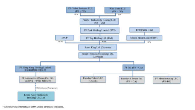 Smart King is a holding company with no material operations of its own. All operations are conducted through Smart King’s U.S. subsidiaries (such as FF) and its VIEs and their respective subsidiaries in the PRC. 40.8% of Smart King’s equity is currently owned by FF Top and the remaining equity of Smart King is owned by Season Smart, an affiliate of Evergrande, and the option holders and Class A ordinary shareholders under Smart King’s equity incentive plan. The entity that sits above Smart King’s holding company structure is FF Global Partners LLC (“FF Global”), which holds 80% of the issued and outstanding equity interests of Pacific Technology. For more information on FF Global, please refer to the discussion in Article II.C.2.d entitled “FF Global Partnership Program.”