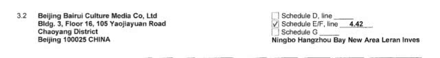(注:贾跃亭披露的破产申请文件73页列出了共同债务人Beijing Bairui文化传媒公司,债务托管人不明白Bairui 和Baile两家公司之间有什么关联)