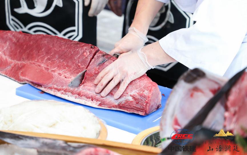 当天样板间还举办了一场盛大的深海鱼膳,一条重达上百斤的巨型蓝鳍金枪鱼跨越5000公里从深海而来,在万众期待中显耀登场,一经亮相便引来阵阵惊呼。