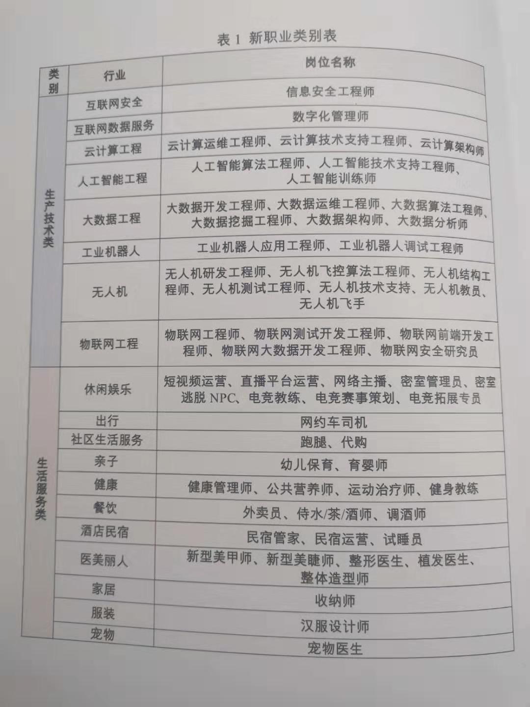新职业类别