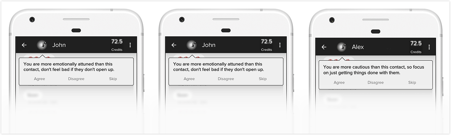 具体来说,通过分析文本,Mei可以为用户侦测、分析交谈对方的情绪、人格和行为模式。Mei通过数以万计的文本对话大数据为用户和每一个联系人建立了完整的个性档案,维度包括个性相似度比较、性格特征解释等。