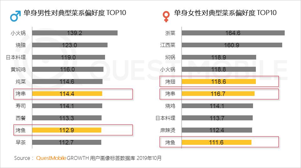 2019单身人群洞察:单身男女差异巨大,唯一重叠点只有烤串、烤鱼