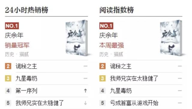 《庆余年》的表现一改此前男频IP剧的颓势,一开播就引发追剧热潮,甚至也带动了小说原著的火热。在小说原著最初首发的起点中文网上,《庆余年》位列阅读指数榜和24小时热搜榜的第一,也是百度小说热搜榜第一。