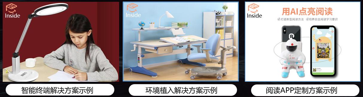 觅机科技整个方案主打Inside的概念,对于方案的落地形态限制较少。目前,该解决方案在产品落地上表现为伴瞳阅读APP与智能护眼台灯两种形态: