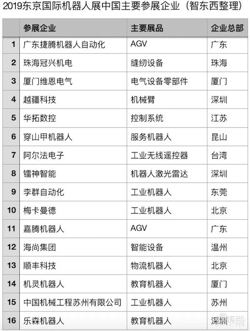 智东西经过对为期4天的东京机器人展的深入研究,梳理出其中16家中国企业。