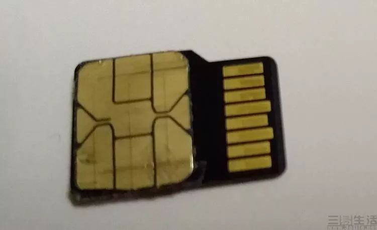 没错,大家可能已经看明白是怎么一回事了,其实就是把传统的SIM卡芯片抠出来,再把TF卡有触点的那一面打磨出一个小坑,然后再把SIM卡直接粘进去。由于手机“与或卡槽”实际上具备SIM卡和TF卡两套位置不冲突的触点,因此这种强行改造的“TF+SIM二合一卡”就可以被分别认成一张SIM卡和一张TF卡,并且能够同时使用。