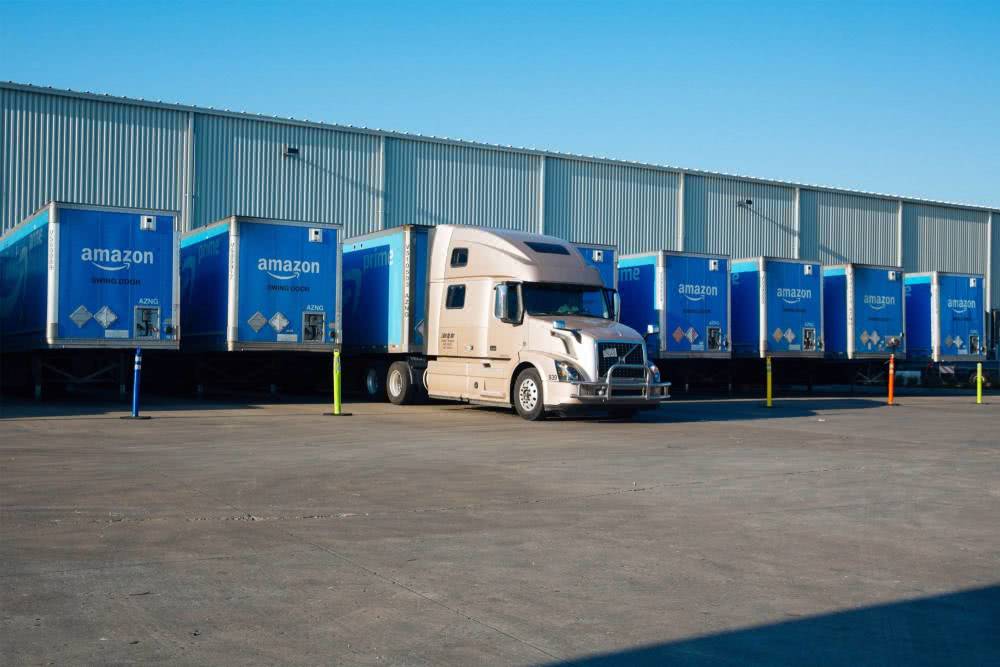 拖车停在芝加哥的亚马逊快递站,在那里他们放下货物,由汽车、卡车和货车车队取走,然后把它们送到顾客的门口