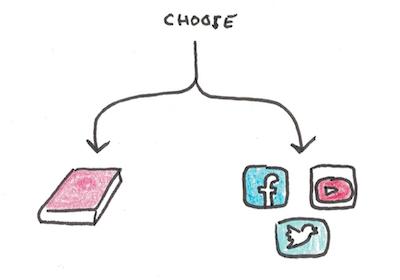如今,书籍最大的竞争对手是社交媒体。我不认为社交媒体有什么本质上的错误,但我也认为它们的设计是为了比纸张技术更好地吸引我们的注意力。由于阅读需要持续关注,因此很难与社交媒体竞争。