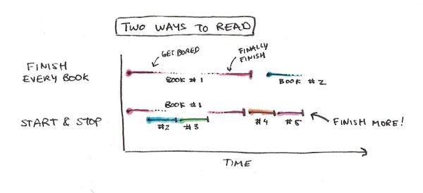 我在增加阅读量方面最成功的一个习惯乍看之下似乎相当不靠谱。我们的目标不是读完更多的书吗?为什么一本还没读完就拿起另外一本书是个好习惯?