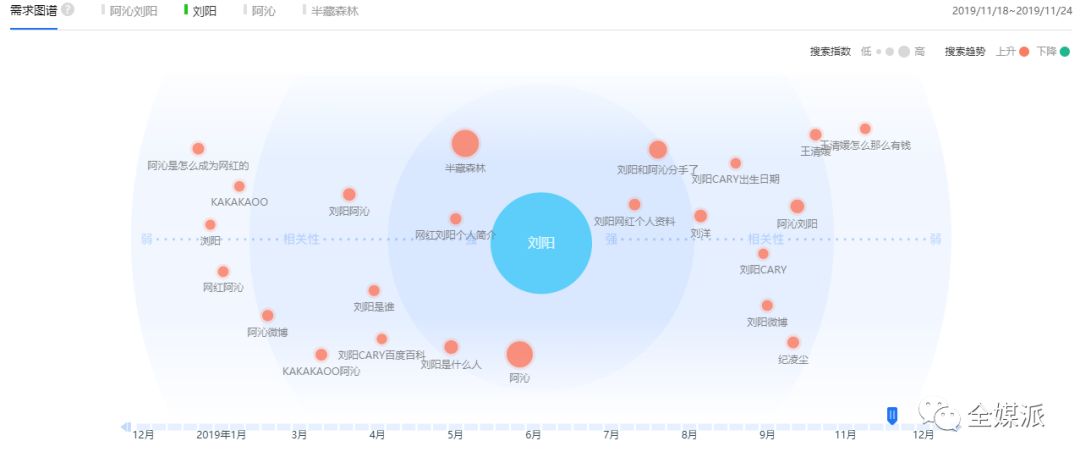 “阿沁”“半藏森林”“刘阳”这三个人是谁?成为了网友们最迫切的信息需求。百度指数呈现的关键词需求图谱,契合了这一特征,在这些关键词中夹杂着不明真相者打错的“阿庆”“刘洋”,也有经验丰富的网友开始深挖几人的背景资料和走红方式。