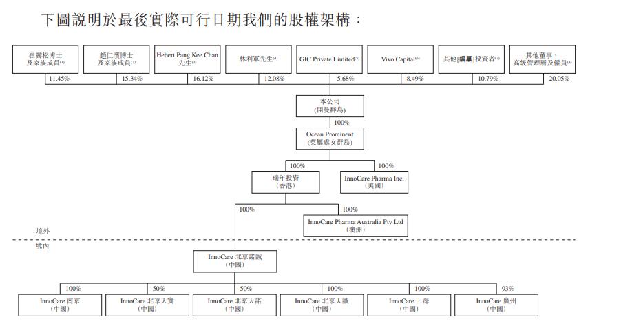 诺诚健华主要股东为崔霁松、赵仁滨、Hebert Pang Kee Chan、林利军、GIC、Vivo Capital。