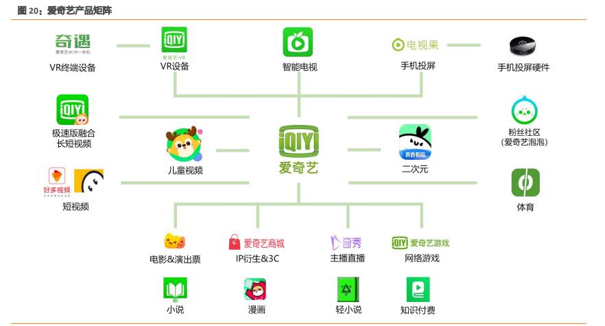 爱奇艺试图实现围绕 IP 的多元化开发变现模式。经过多年发展,爱奇艺搭建起一个完整产品矩阵,包括长视频平台爱奇艺 APP、网络游戏爱奇艺游戏 APP、小说爱奇艺文学 APP、 漫画爱奇艺漫画 APP 等,爱奇艺将携手合作伙伴共同投资制作内容,并通过爱奇艺的渠道实现内容分发后共享收益,形成有别于海外视频流媒体平台的“合作商+爱奇艺-平台-用 户”的商业模式。 但这个生态能否运作顺利,还要时间来证明。