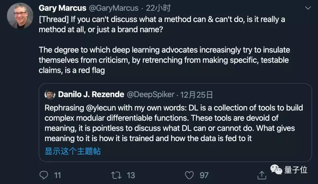 推崇深度学习的人现在为了不被批评,总是在尽量避免提出具体、可验证的主张。这是有一个很危险的信号。