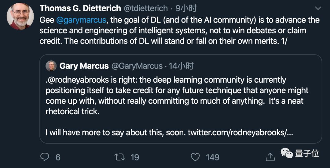 面对这样的“挑衅”,Dietterich表示图样图森破:DL(以及AI社区)的目标是推动智能系统的科学和工程进步,而不是成为嘴炮王者。