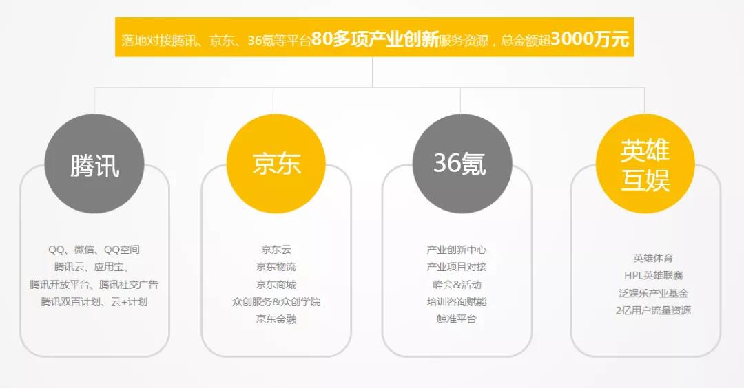 国源科控集团从2016年第一个空间——腾讯众创空间(西安)运营以来,就建立了完整的创业服务体系,积极为创业团队对接多种资源扶持,凭借专业创新的运营理念,探索出了一条产业创新孵化服务的新路径。在政府与互联网一线资源的支持下,陆续运营了腾讯文创基地(西安)、京东云电商创新中心、腾讯云人工智能技术空间、36氪产业创新中心(西安高新区)、启航众创、国源创新空间6家空间,运营面积超3.5万平米,累计孵化项目510+,在孵人数1680余人,举办超过435场活动,覆盖人群超过16万人,对接腾讯、京东、36氪等平台90多项产业创新服务资源,总金额超3500万元。