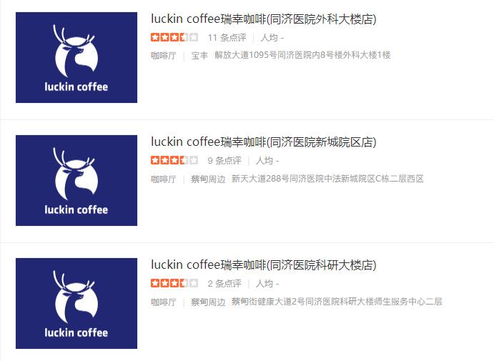 在武汉同济医院开出的几家瑞幸,图片来自大众点评