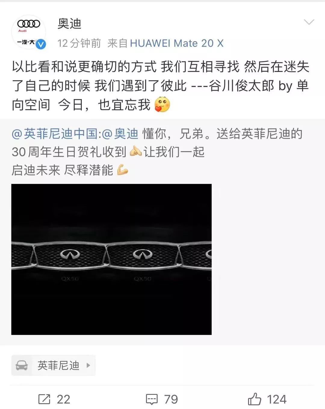 必须要说一句,奥迪的卖萌回复以及其他车企品牌后期在微博上的互撩,也非常有效地助推了此事的持续刷屏。